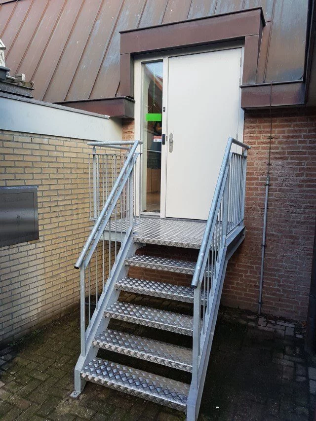 Vluchtwegtrap aan de achterzijde van de Rabobank in Den Burg